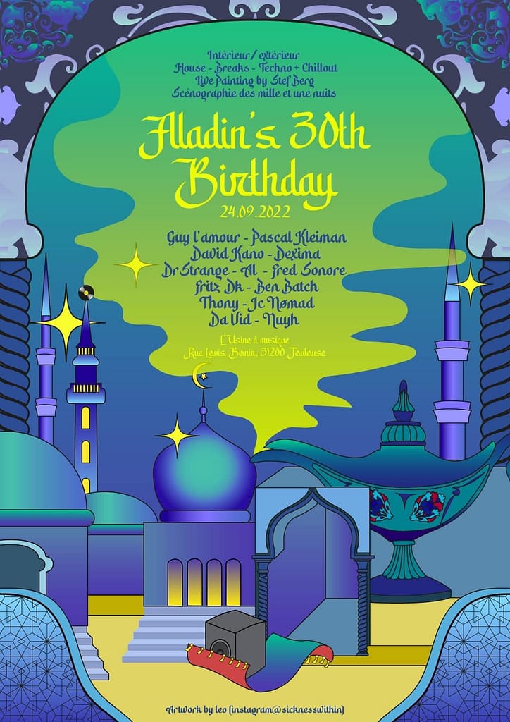 Franck Ros alias Aladin 1992->2025 raves, clubs, festivals, dj sets & live-act